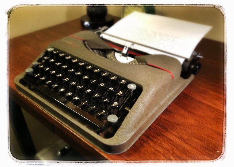 The nifty little typewriter in this review originated in 1941 and was passed down to a granddaughter from a grandfather who served in World War II. I can see this little typewriter rumbling over the fields of northern France and Belgium in the back of a Willy Jeep. This is a field reporters machine. It’s got all the looks of military issue ordnance. This typewriter is small and could easily fit in your rucksack. And with an all steel, snap-on cover, it’s ready for a jaunt to the coffee shop or in a saddle bag slung across a camel’s back for a trek across the Sahara.