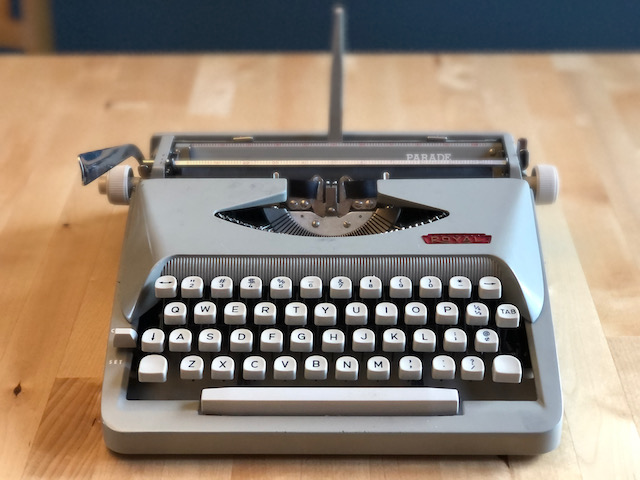 I like tiny & tidy. We bought a tiny teardrop camper last spring. We recently moved to a tiny house, for us at least. We have one of those tiny Dyson cordless vacuum wonders for daily dust & dander. So when I saw this Royal Parade, I had to get it. The name plate says, Made in Holland, so as not to confuse the average gringo. The Netherlands? What’s that? Perhaps I’m not the only one who imagines the place of origin influences an object. Just ask Apple, who insists on labeling their products: “Designed in California,” as if designed in the USA might mean Muncie, Indiana. I’ve never been to Holland, I mean the Netherlands, but I imagine it a place of free expression, abundant bicycles and good beer, all admired ingredients when establishing a typewriter operation.